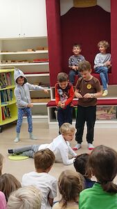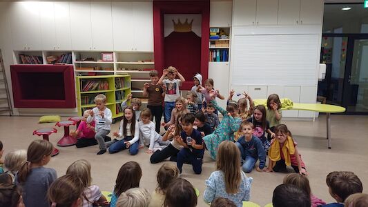 Wenn aus der Delfin-Klasse fürchterliche Geräusche zu hören waren - nur keine Angst! Es war bloß unser Theaterprojekt. Wir verwandelten uns ein paar Tage lang in kleine freundliche, schreckliche, niedliche oder unheimliche Monster. Kleine Szenen spielten wir am Freitag ein paar Kindern aus anderen Klassen vor. Danke an Susanna vom Next Liberty!
