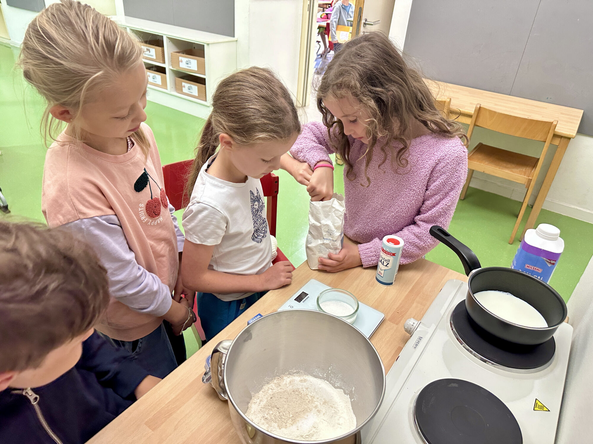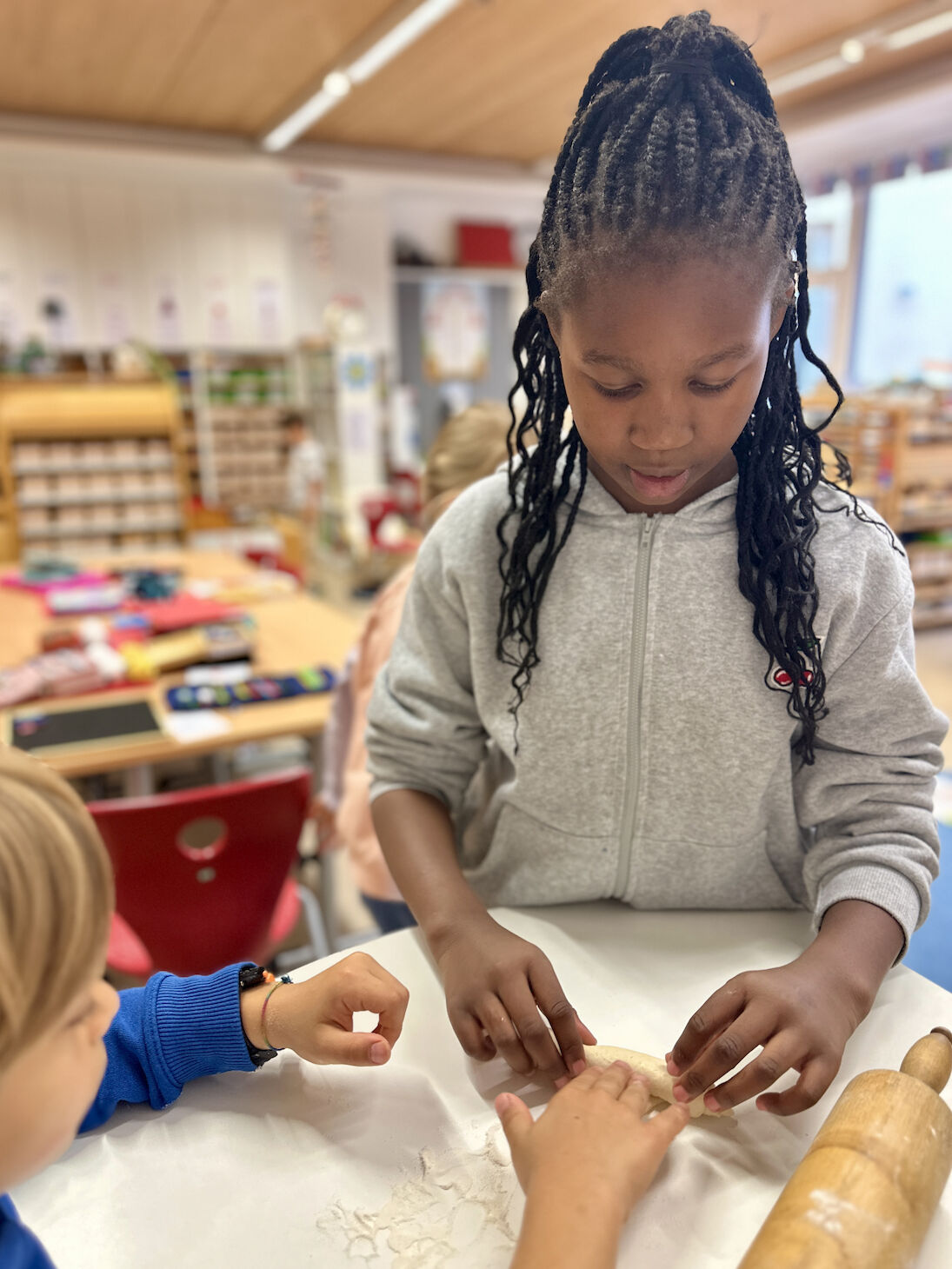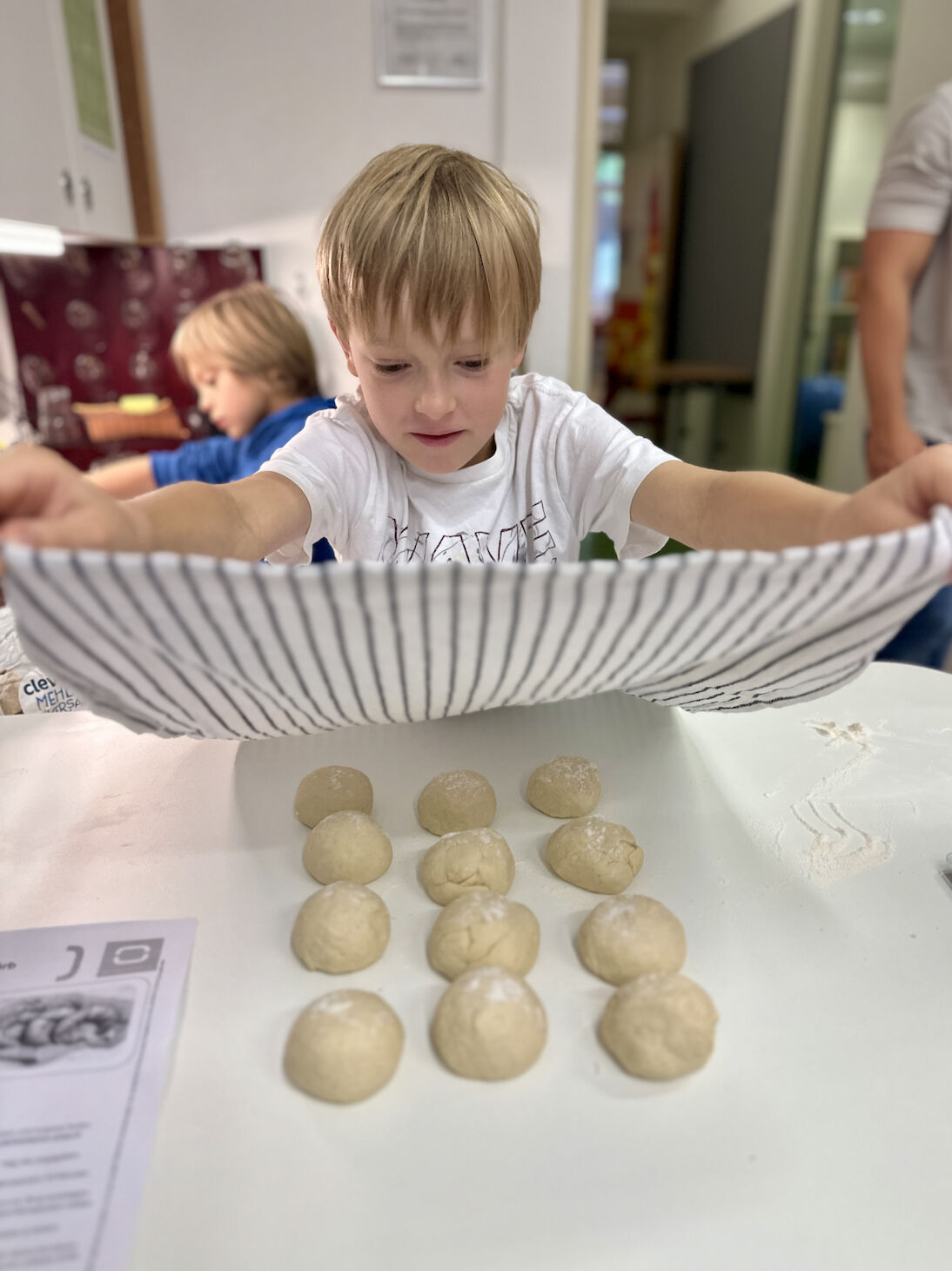 Seit diesem Schuljahr verfügt die Fuchs-Klasse über ein eigenes Backrohr. Die Vorfreude aufs erste Kipferl-Backen war entsprechend groß. Topmotiviert wurde in der 2. Schulwoche gewogen, geschüttet, geknetet, zerbröselt, erwärmt, zugedeckt, gewalkt, geformt, besprüht, sauber gemacht und schließlich gebacken - und vor dem Verkosten gerne miteinander geteilt. Köstlich, wie sich der Duft frischen Gebäcks langsam in der Klasse ausgebreitet hat. Vor dem genüsslichen Verzehr wurde das Selbstgebackene noch ausgiebig beschnuppert! Wir freuen uns auf weitere Backabenteuer!