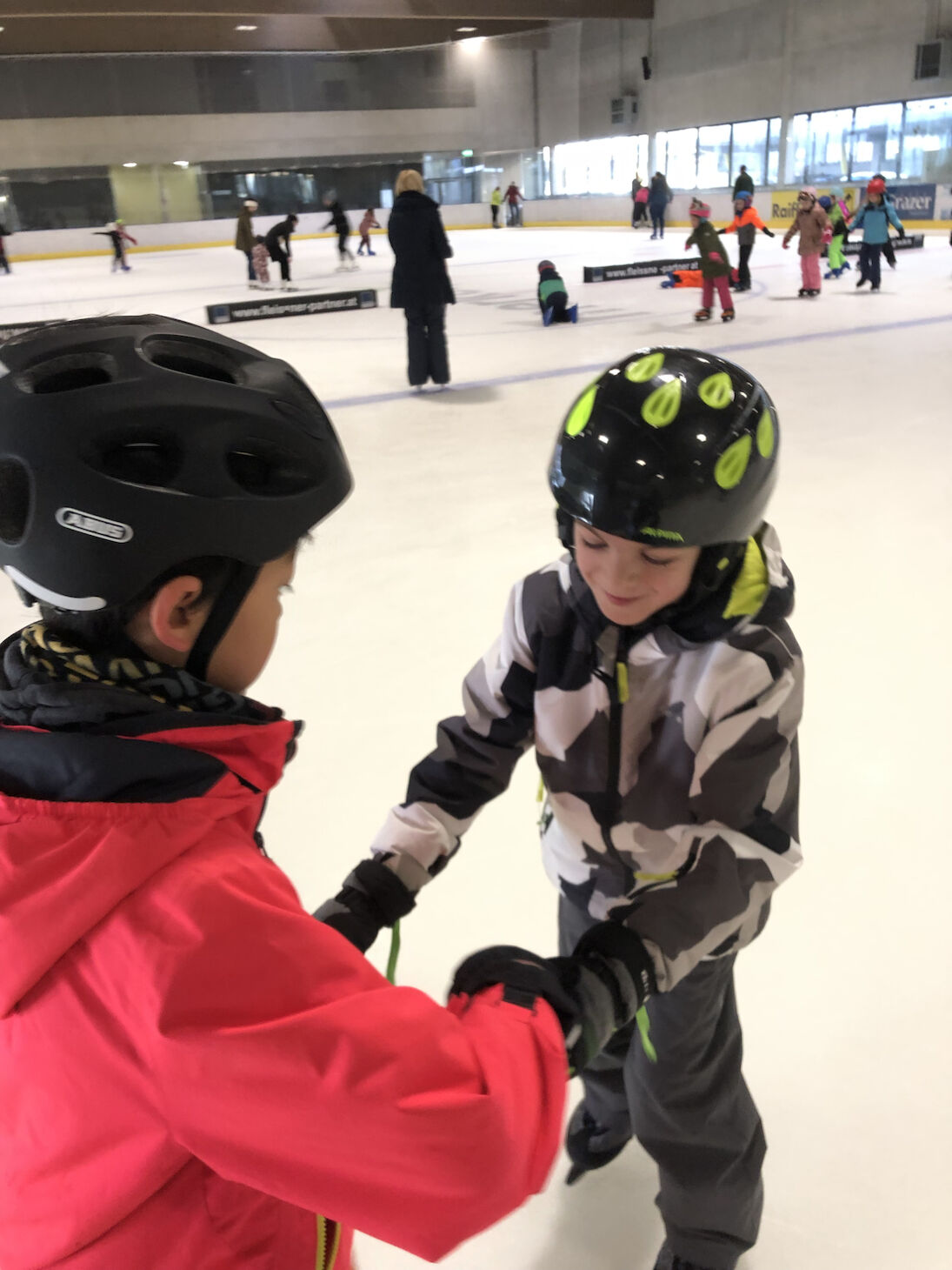 In der Vorweihnachtszeit gingen wir gemeinsam eislaufen. Für viele Kinder war es ein besonderes Erlebnis, sich auf dem Eis auszuprobieren. Mit viel Spaß, gegenseitiger Unterstützung und Bewegung verging die Zeit wie im Flug. Dieser Ausflug brachte Abwechslung in den Schulalltag und stimmte uns auf die Weihnachtszeit ein.