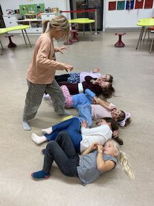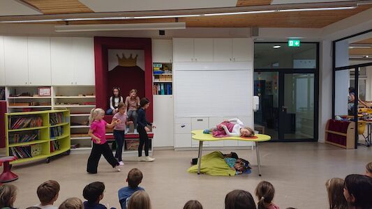 Wenn aus der Delfin-Klasse fürchterliche Geräusche zu hören waren - nur keine Angst! Es war bloß unser Theaterprojekt. Wir verwandelten uns ein paar Tage lang in kleine freundliche, schreckliche, niedliche oder unheimliche Monster. Kleine Szenen spielten wir am Freitag ein paar Kindern aus anderen Klassen vor. Danke an Susanna vom Next Liberty!