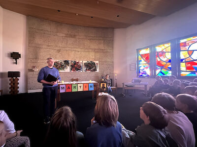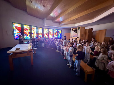 Anlässlich des Gedenktages des Heiligen Martin von Tours (11.11.) ist es eine schöne Tradition, einen Gottesdienst anlässlich dieses Lichtbringers zu feiern. Heuer haben am 10.11. die Schmetterlinge, Delfine, Füchse und Sterne in der Kapelle des Hauses gefeiert.