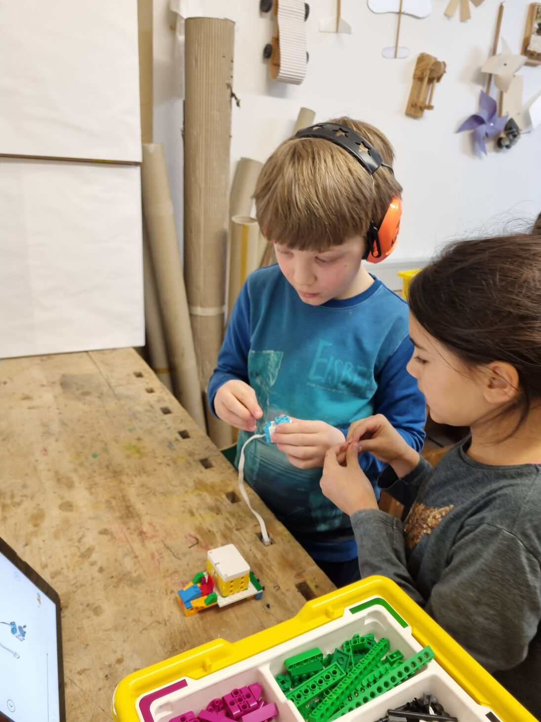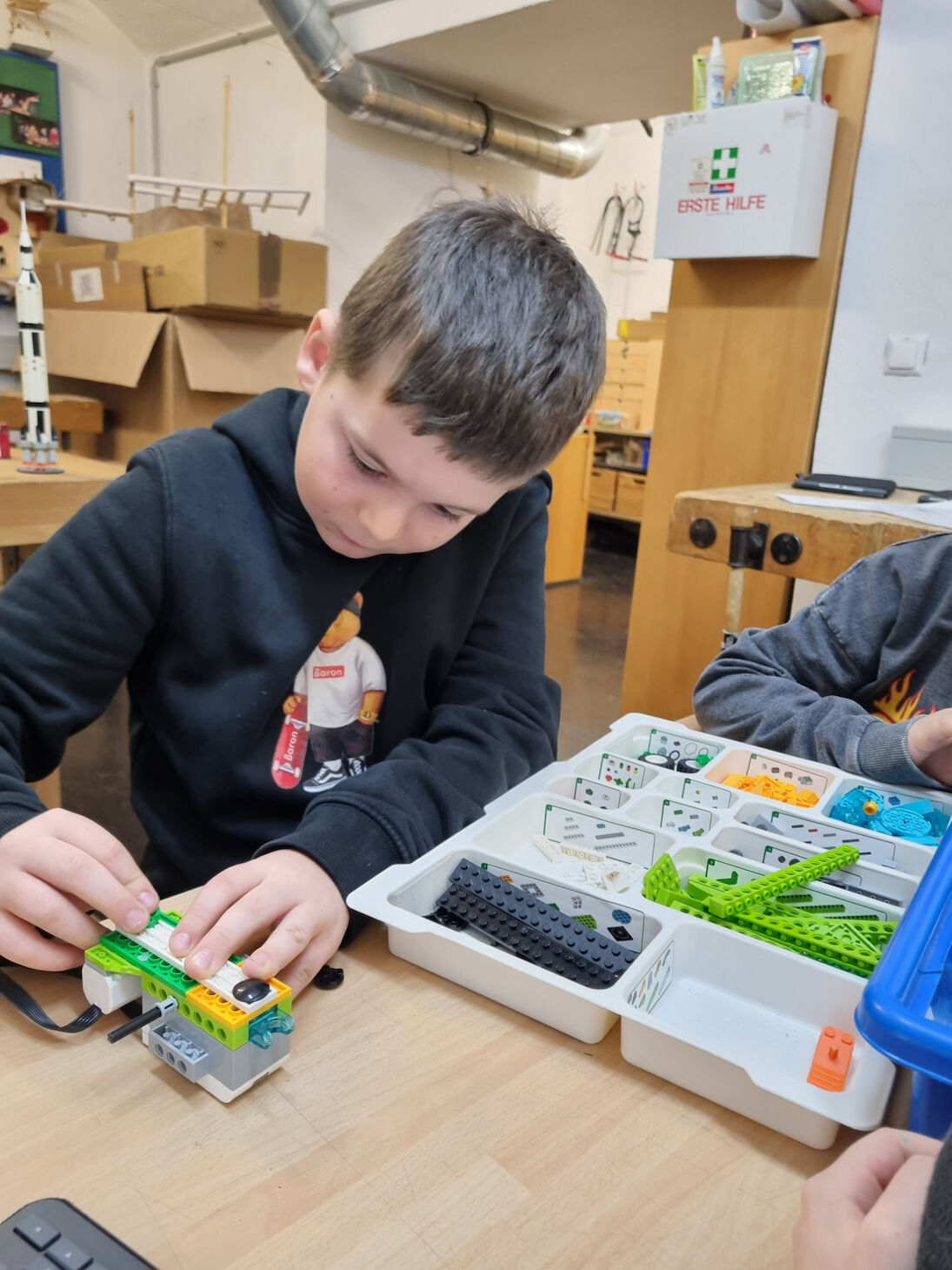 Zum MINT-Unterricht der Praxisvolksschule gehört auch die Vermittlung von Programmierwissen. Daher ist das Bauen von Robotern bzw. programmierten Fahrzeugen fester Bestandteil.