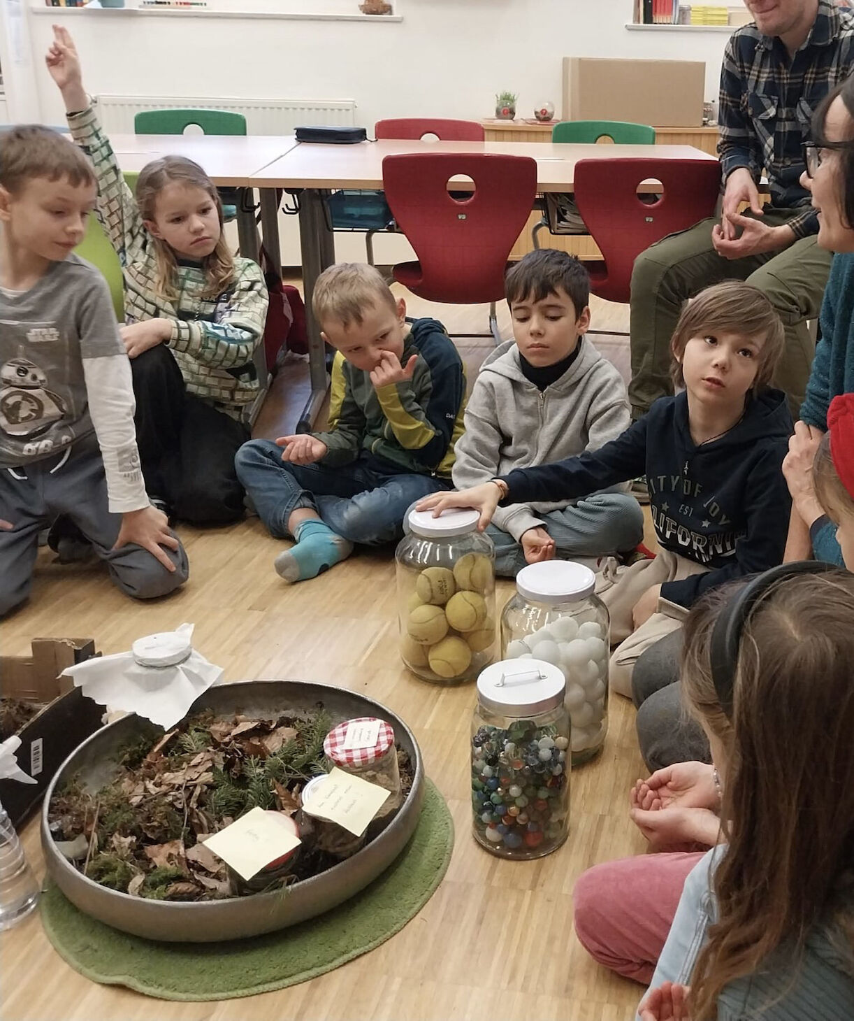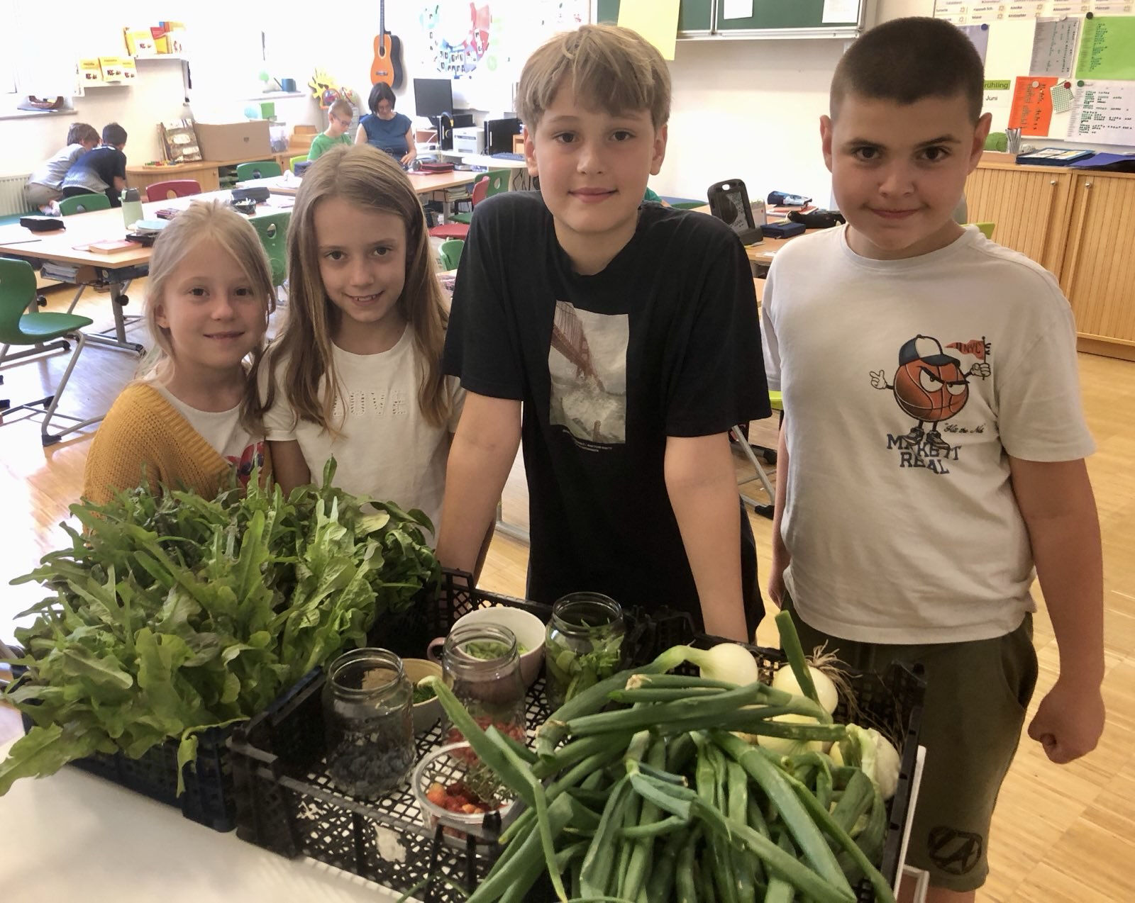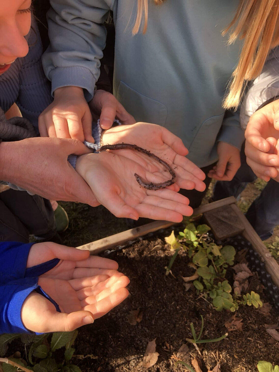 Nach der Erweiterung des Schulgartens in den beiden letzten Jahren in die Breite, gingen wir 2024/25 in die Tiefe: Der Schwerpunkt dieses Jahres verschrieb sich ganz dem aktuellen und wichtigen Thema Boden, Biodiversität und Klimaschutz durch Humusaufbau. So lag es in der Natur der Sache, den Garten um einen Komposthaufen zu erweitern und damit den Kreislauf zu schließen. Die Sonnen- und Schmetterling-Klasse arbeiteten u. a. gemeinsam mit dem UBZ das ganze Jahr zum Thema, während der SDG-Woche konnten alle Kinder der PVS zu Bodenbotschafter*innen werden. Gefördert wurde dieses Projekt durch das BNE (Bildung für nachhaltige Entwicklung).